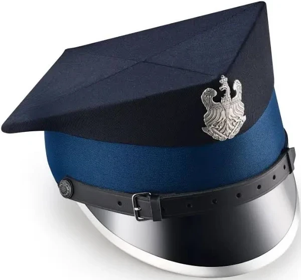 Czapka rogatywka wykonana jest z tkaniny gabardyna w kolorze ciemnogranatowym.