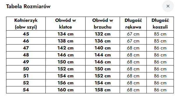 Rzeczywiste wymiary koszuli podane w tabeli rozmiarów, tkanina jest lekko naciągliwa co czyni ją wygodniejszą w użytkowaniu.