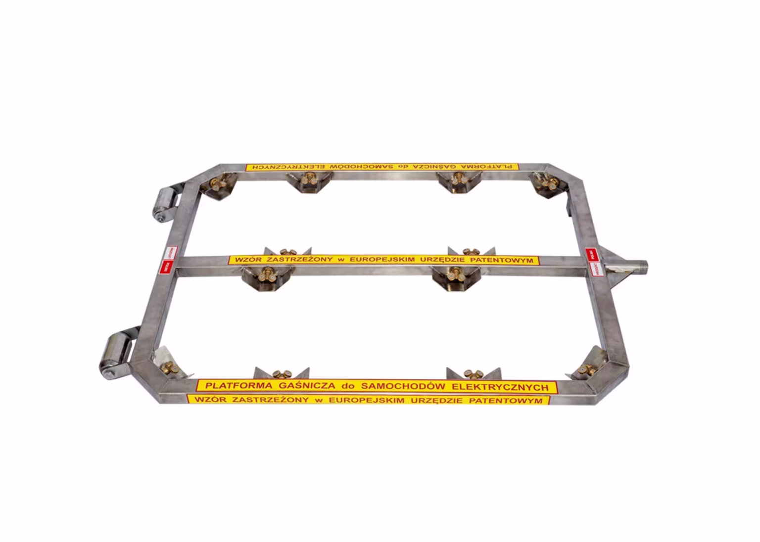 Kompaktowe wymiary (77 cm x 100 cm, wysokość 5 cm) umożliwiają łatwe wsunięcie pod nisko zawieszone pojazdy, z możliwością zasilania wężem W-25 lub W-52. Platforma jest wyposażona w 12 podwójnych dysz wodnych, które intensyfikują proces chłodzenia i gaszenia.