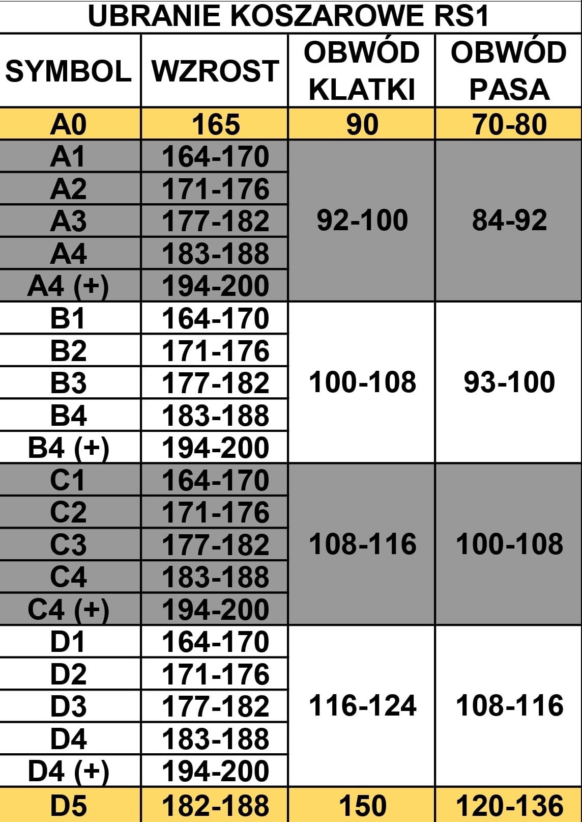 Uwaga: Możliwość zamówienia bluzy i spodni w różnych rozmiarach np – bluza B1 a spodnie A1.