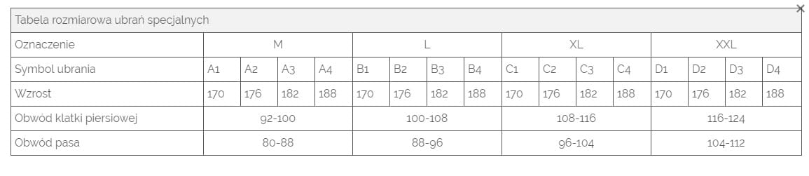 -Ubranie posiada Świadectwo Dopuszczenia CNBOP.